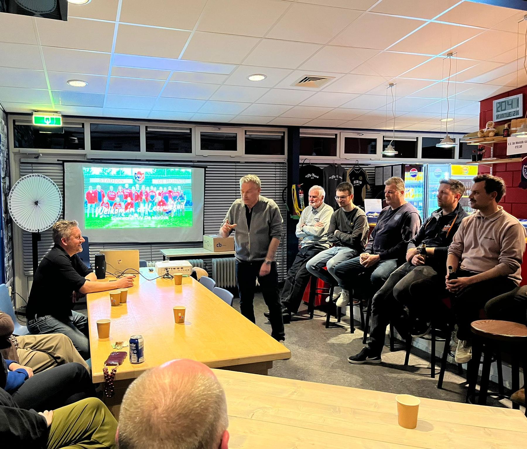 Met veel ( Groningse ) humor, vlogen de anekdotes van zijn miljoenentransfers van onder meer Luis Suarez, Virgil van Dijk en Arjen Robben door de kantine. Een drankje en een hapje waren goed verzorgd en zijn